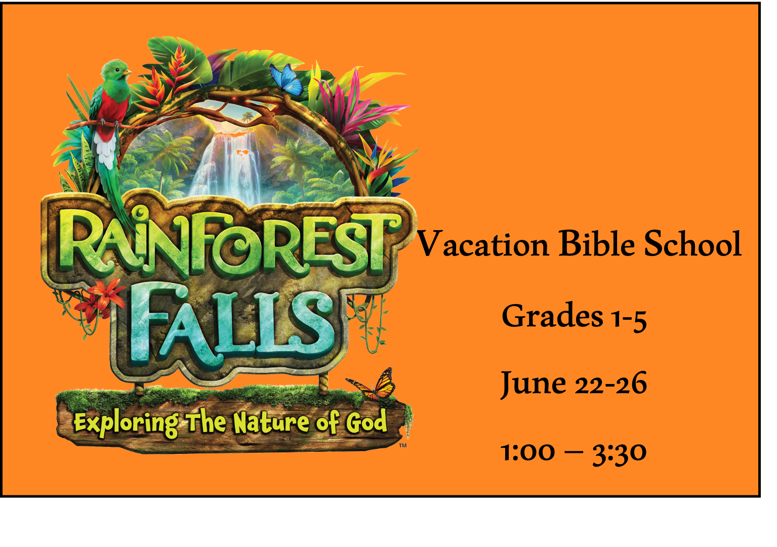 At Rainforest Falls VBS, we’ll guide kids on the ultimate Rainforest adventure where the sounds of birds are loud, the flowers are awesome, and wildlife is everywhere. Rainforest Falls VBS shows kids that Jesus is a faithful friend we can always trust. He’s our Forever Guide!